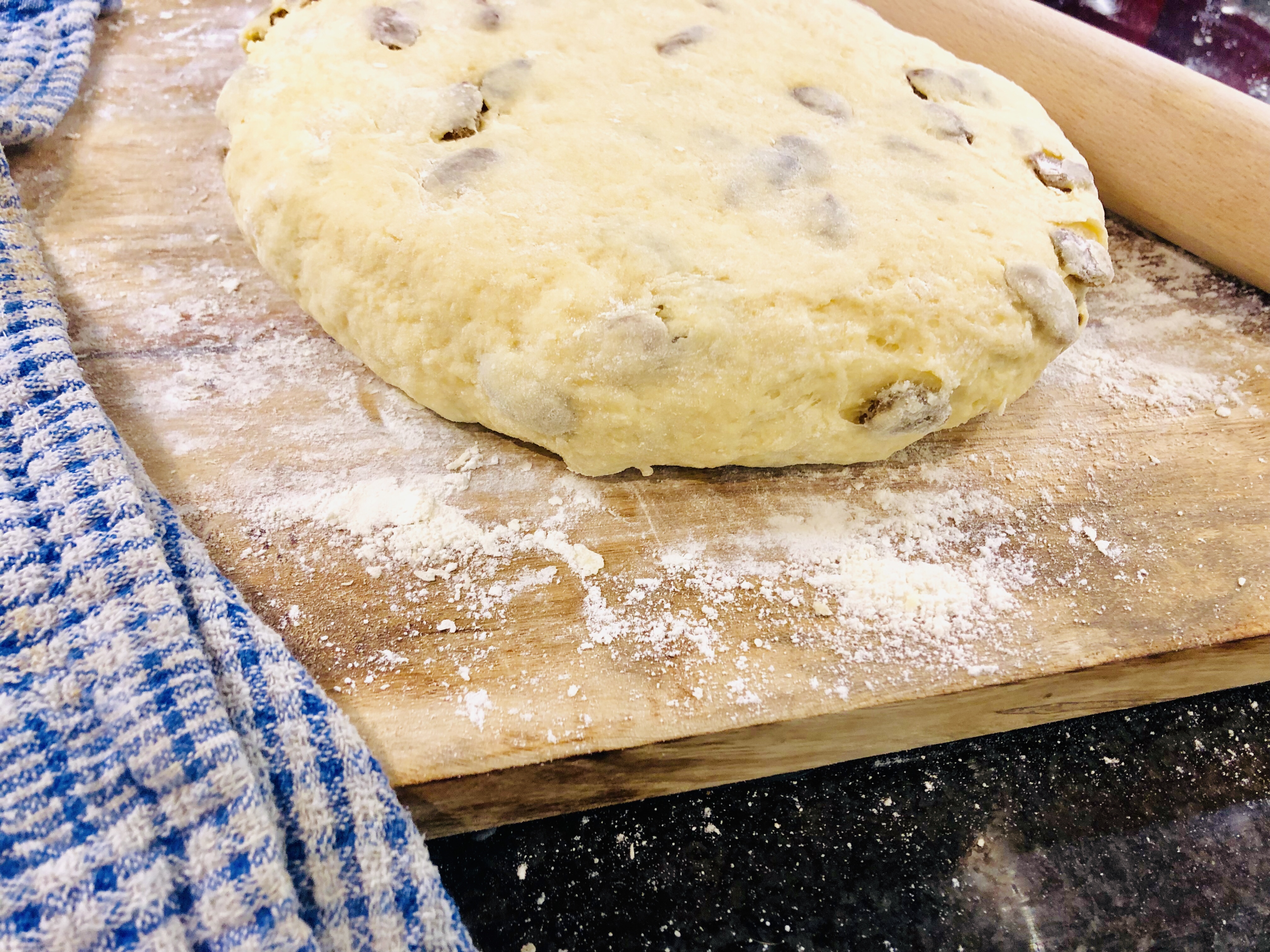 Add the sultanas to the flour mix and start mixing on a low speed while slowly adding the milk. You want the mixture to be nice and soft but not wet so you might not need all of the liquid.