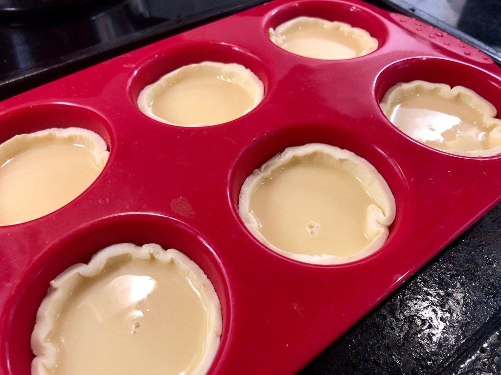 Fill the pastry up with your egg custard mix leaving a small space at the top.